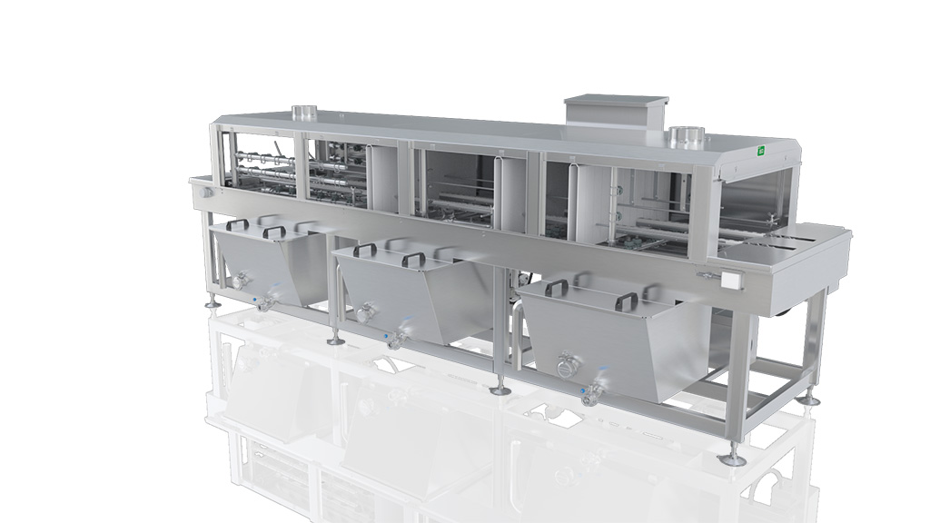 自動周轉箱清洗機主體采用全304不銹鋼材料制作,衛生、干凈;