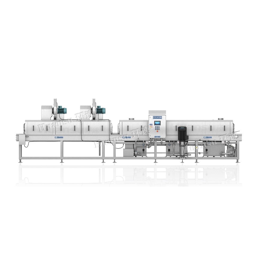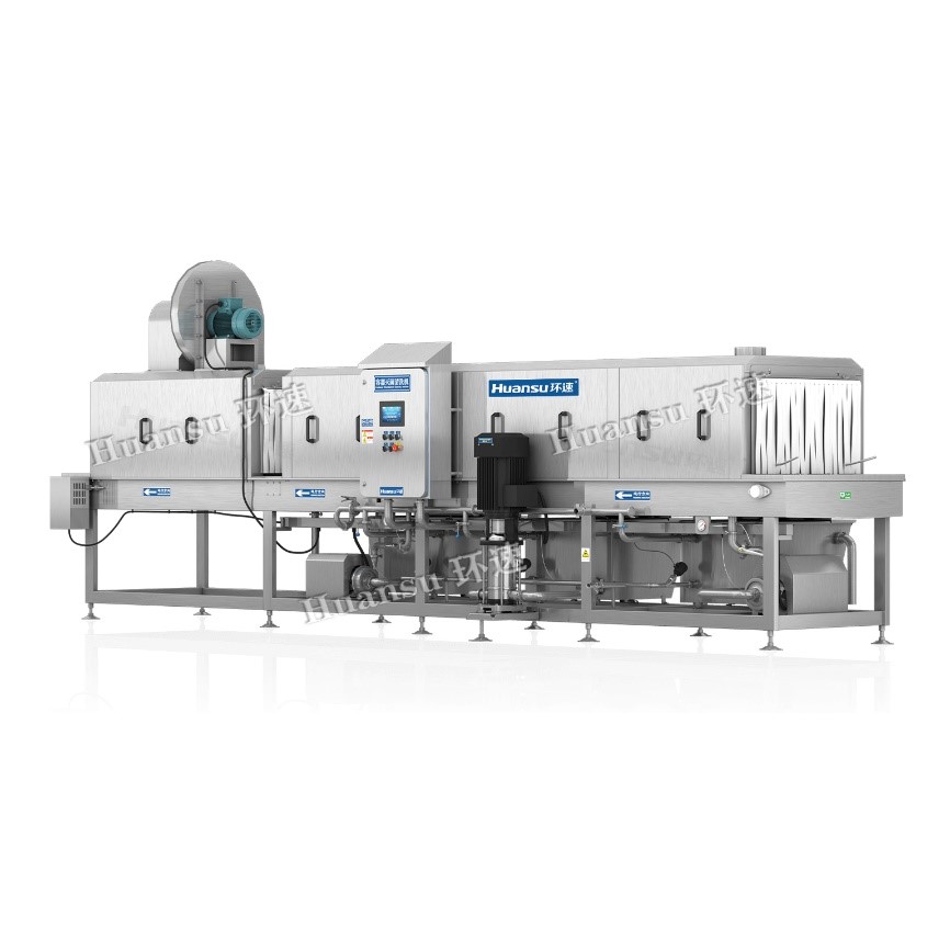 環速的這款水果筐清洗機使用高溫(80°C以上)高壓(0.2~0.7Mpa)滅菌清洗方式,先后通過預洗階段、主洗階段、漂洗階段、凈洗階段,使水果塑料筐煥然一新,清洗時不需要添加任何洗滌劑,對環境不污染。這款塑料筐清洗機可以配備高效率的風干或烘干系統,滿足客戶的不同需求,使洗凈后的容器達到90%以上的水分去除效果,從而達到既滅菌又無水漬殘留的效果。