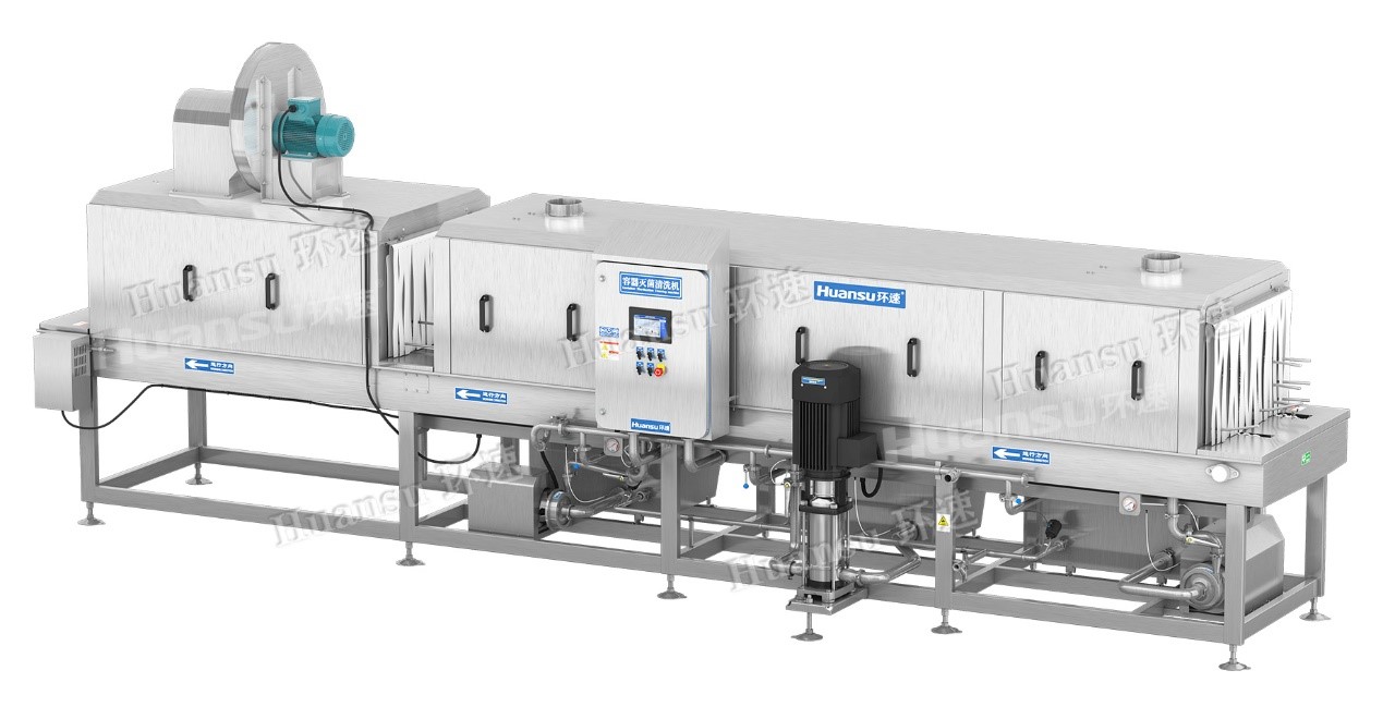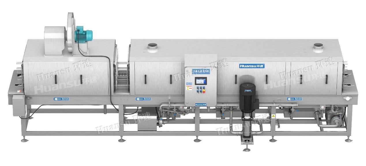 人們對(duì)于食品安全不僅僅是局限于食材安全等方面,也同時(shí)注重了容器方面的衛(wèi)生情況。像家里用的刀具、筷子、盤和碗等方面的餐具,也開始使用各種小型家電進(jìn)行高溫消毒殺菌,只為保障食品安全。而對(duì)于工廠來說,盛放食品的容器就像家中用的刀具、餐盤一樣,也需要在每次使用后進(jìn)行高溫消毒殺菌,才能保障我們的食品安全。現(xiàn)如今,食品行業(yè)逐漸走上工業(yè)化,許多工廠開始選擇機(jī)械設(shè)備來代替人工進(jìn)行清洗,但機(jī)械清洗也存在著許多弊端,如清洗不透徹、風(fēng)干不透徹,清洗過程中需要添加大量清洗劑造成排放困擾等許多問題。為了解決這些難題,環(huán)速研發(fā)設(shè)計(jì)了塑料筐、盤清洗機(jī),雙通道同時(shí)清洗,提高效率,使容器洗得透徹干凈。