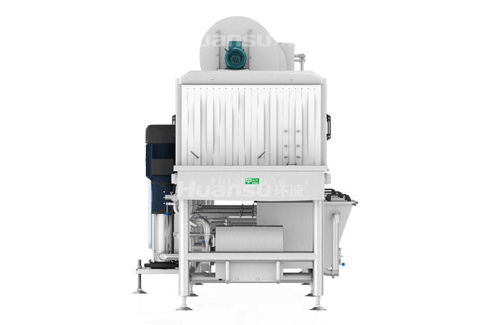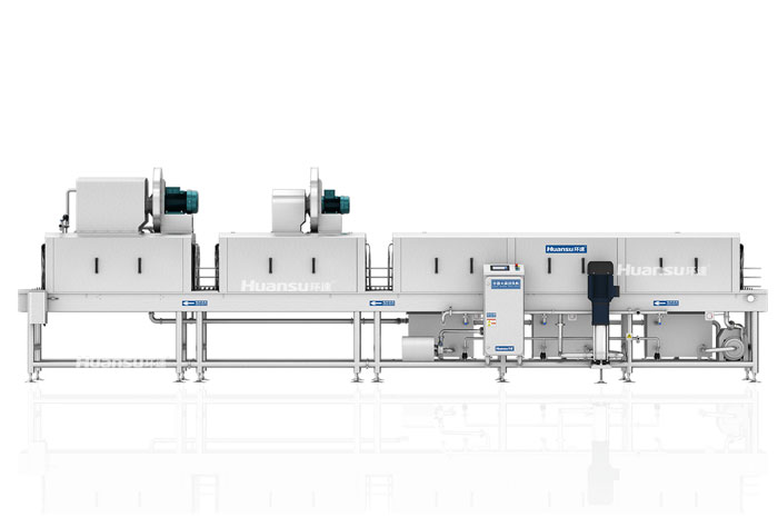 其通過使用高溫(可按需設(shè)置)高壓水進(jìn)行四級(jí)清洗,將筐盤容器上的雜質(zhì)一步步剝離,清洗干凈容器,并進(jìn)行巴氏滅菌,實(shí)現(xiàn)容器的快速周轉(zhuǎn)。此外,環(huán)速科技的筐盤滅菌清洗機(jī)實(shí)現(xiàn)了水的循環(huán)利用,在四級(jí)清洗對(duì)應(yīng)的三級(jí)水箱中,三級(jí)水箱水量增加后溢入二級(jí)水箱,二級(jí)水箱的清洗水溢入第一級(jí)水箱,第一級(jí)水箱的清洗水溢入下水道,通過這三級(jí)水的循環(huán)利用,始終保持后位水箱中的水總是比前一級(jí)水箱干凈,形成水循環(huán),減少設(shè)備工作過程中的用水量,節(jié)省成本。在清洗結(jié)束后,部分設(shè)備型號(hào)還配備了風(fēng)干和烘干步驟,通過風(fēng)刀將筐盤容器中殘留的水滴吹落,實(shí)現(xiàn)節(jié)能、高質(zhì)量的除水功能。