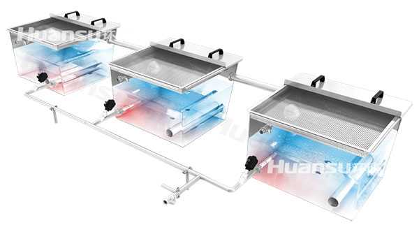 環速周轉筐清洗烘干機整機采用醫藥標準加工而成,可直接進行滅菌水洗、化學清洗、蒸汽滅菌,拆解清洗,清洗過程不需要添加洗滌劑,直接使用自來水就可以,不產生清洗劑液采購與污水排放成本;自主研發的三級獨立水箱和二級過濾系統可確保循環用水的潔凈度,防止清洗系統的堵塞;設備運行過程中,使用三級水箱更替用水,清洗水通過多級過濾循環使用;
