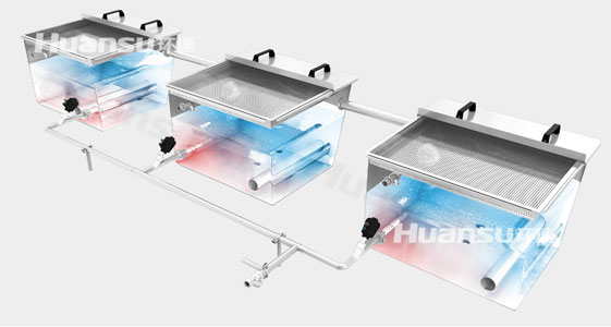 漂洗由三級水箱供水,沖漂式清洗用于漂去浮沫與污水。經(jīng)過漂洗的容器已基本滿足一般場景使用的衛(wèi)生標準。