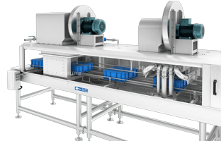 我們知道,容器洗得再干凈,表面仍然存留部分的水,對于一些對容器干燥度要求高的企業(yè)來說,這些容器是無法投入使用的。而即便是暫時不用,潮濕狀態(tài)的筐盤也是不利于集中存儲的,因為它們更容易沾染空氣中的灰塵,將再度成為微生物繁殖的溫床。因此,清洗后的容器需要進行脫水處理,而環(huán)速容器滅菌清洗機恰恰充分照顧到這一點,可在清洗段后端對接容器風干機或烘干機,利用自主研發(fā)的風刀裝置,將筐盤表面的水吹飛,接再利用高溫氣流烘干殘留的水分,使容器快速干燥,達到即時使用的目的。