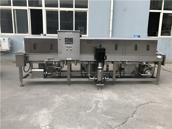 清洗機工作原理:該產品主要有輸入、預洗、主清洗、漂洗及輸出部分組成。合理的水路設計,達到效率快能耗低。預洗水箱,主要清洗水箱設有整齊加熱及溫控裝置,以便調節水溫達到合理清洗效果。輸送裝置采用變頻調速,以滿足不同條件下的清洗要求預洗和主清洗部分均帶有過濾系統,過濾槽易取出,容易清洗,整機采用不銹鋼304制作. 現今塑料周轉筐(又叫塑料箱、膠籃、膠筐、物料筐、料箱、料盤等)已廣泛應用于各行各業,其中以食品行業與機械零配件行業為主。其清洗往往需要投入大量人工,提高生產成本。