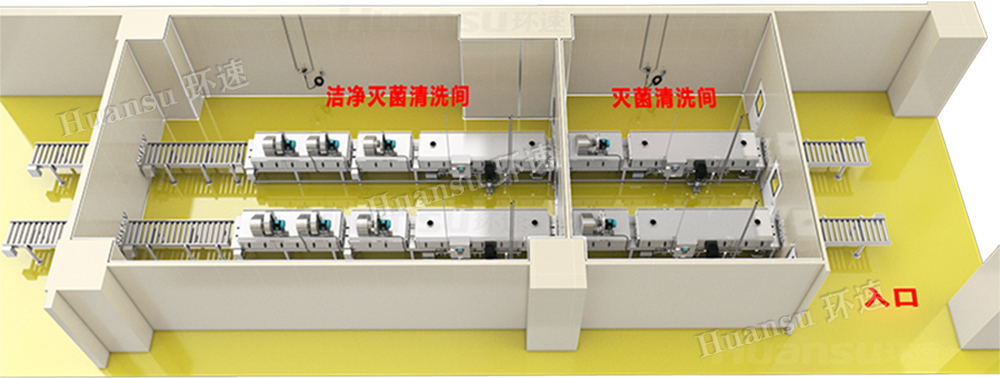 容器滅菌清洗機(jī)通過高溫(80℃以上)高壓(0.2~0.7Mpa)清洗,實現(xiàn)托盤洗凈滅菌的目的,通過高壓大流量風(fēng)刀,去除托盤表面水分;高溫烘干系統(tǒng)可去除托盤殘留水分,對容器進(jìn)行再次滅菌,實現(xiàn)容器快速周轉(zhuǎn)使用的目的。