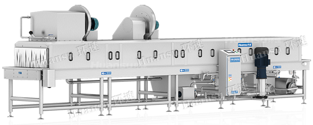 容器滅菌清洗機通過高溫(80℃以上)高壓(0.2~0.7Mpa)清洗,實現周轉筐洗凈滅菌的目的,通過高壓大流量風刀,去除周轉筐表面水分;高溫烘干系統可去除周轉筐殘留水分,對容器進行再次滅菌,實現容器快速周轉使用的目的。