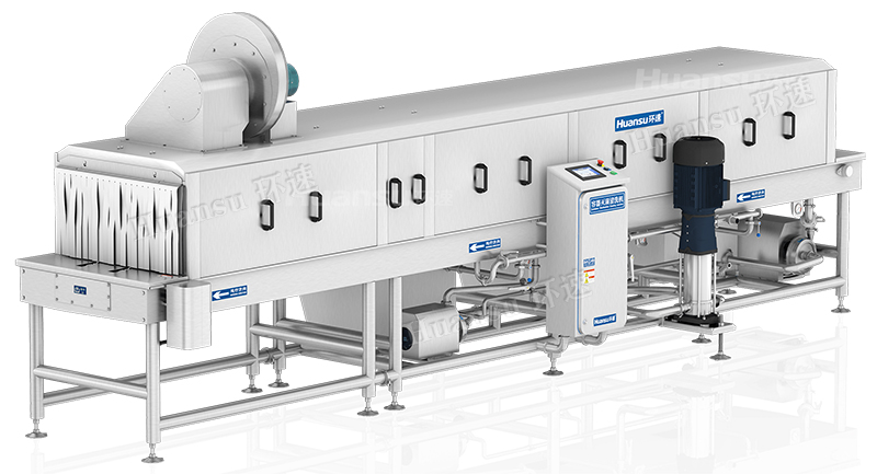 1.快速高質:專有的“四部快速清洗”,容器由衛生環鏈輸入清洗機中,依次通過預洗、高壓清洗、漂洗、凈水清洗,實現360°無死角清洗滅菌。普通清洗效率200-900只/小時,滅菌清洗效率500-600只/小時,清洗速度可根據生產需要任意調節。利用康達效應設計的風結構,風刀角度、高度可根據容器形狀輕松調整,提升周轉使用效率;高溫烘干系統可對容器進行高溫滅菌并去除容器表面水分,提升容器周轉效率。