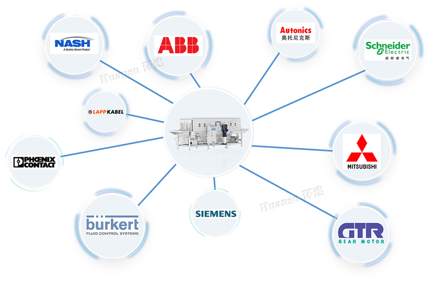 6.運行穩定:整機電器配件均采用客戶信賴、運行穩定的一線品牌,質量有保障、使用穩定、故障率低、壽命長。電控柜內PLC、觸摸屏均為日本三菱品牌,電器元件為施耐德品牌配合使用。電控柜可水沖洗,防護等級達到IP69K標準,設備采用SUS304不銹鋼,食品級尼龍、硅膠為原材料、采用日本的拆洗標準、無縫焊接標準、歐盟食品設備制造標準、三標合一設計精制而成。
